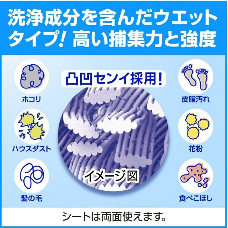 ベタベタ汚れのリセット清掃に!洗浄液を含んだ立体構造のシートで、ホコリ・髪の毛から皮脂・泥・食べこぼしまで1度に拭き取れます。