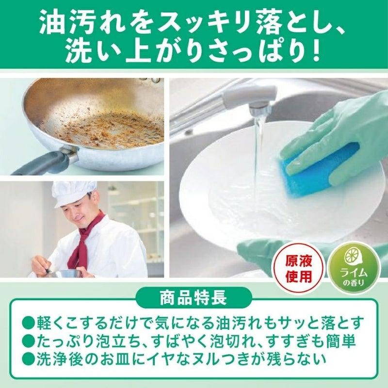 油汚れをスッキリ落とし、すばやい泡切れの食器用洗剤。