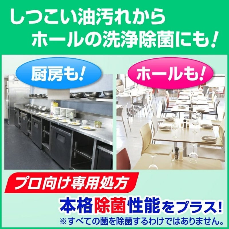 換気扇・レンジなどのしつこい油汚れもぐんぐん落とす、厨房・ホール用洗剤です。
