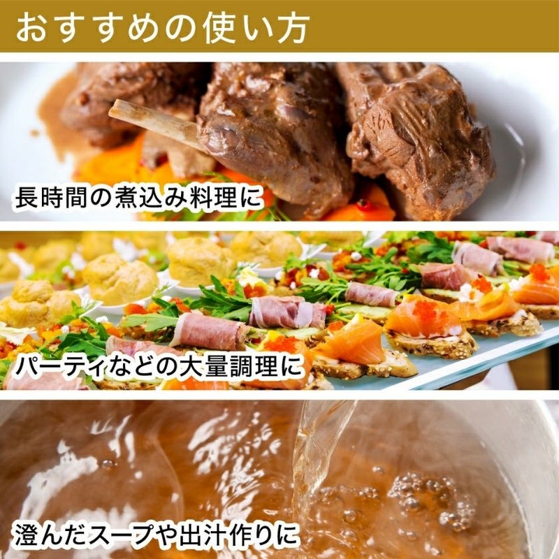 余分な水や油を素早く吸収するので、料理が水っぽくならず、また揚げ物はカラッと仕上がります。使用後の油こしにもお使いいただけます。