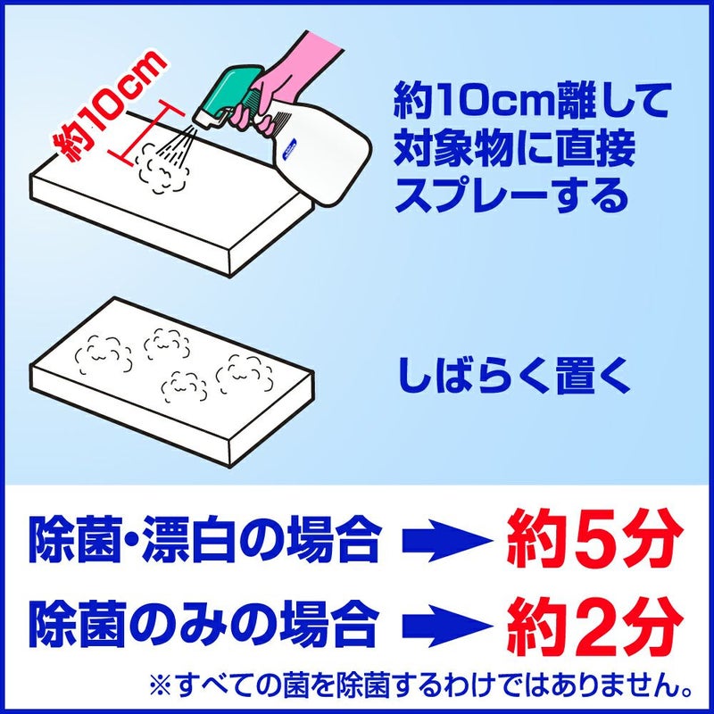 スプレー後、置いておくだけで、優れた除菌・漂白・消臭効果を発揮します。