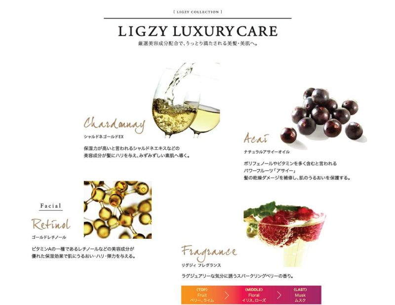 フルーティな香りからフローラル、ラストはムスクがほのかに香る上質なアロマに仕上がりました。